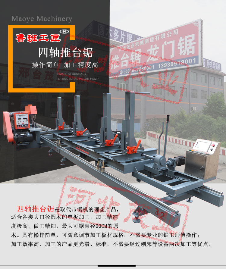數(shù)控四軸推臺鋸產(chǎn)品是我公司在原有推臺鋸設(shè)備基礎(chǔ)上新設(shè)計開發(fā)的產(chǎn)品,具有高品質(zhì)、新外觀、多鋸片鋸切設(shè)計,穩(wěn)定性高,安全、高效、操作維護簡單等優(yōu)點。